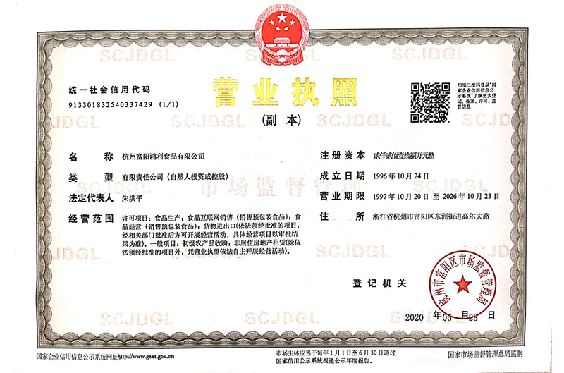 杭州富陽鴻利食品有限公司創(chuàng)辦于1996年,目前直接控股浙江佳伊樂食品有限公司、浙江成飛進(jìn)出口公司。公司共占地面積59900平方米(其中鴻利工廠7900平方米,佳伊樂52000平方米)。2004年通過HACCP認(rèn)證。主要從事初級(jí)農(nóng)產(chǎn)品開發(fā)、加工、銷售的外向型企業(yè),具有自營(yíng)進(jìn)出口權(quán)。作為“拾得一品”品牌的主生產(chǎn)線,杭州富陽鴻利食品有限公司成就了“拾得一品”品牌產(chǎn)品的高品質(zhì)。